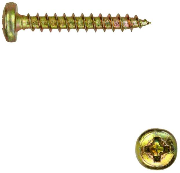 D-fejű faforgácslapcsavar PZ, tövig menetes, sárgára horganyzott