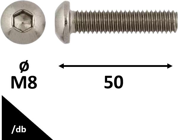 Domború Fejű Belsőkulcsnyílású Csavar 10.9 Galv. Horg. Iso7380-1 M8x50 /db