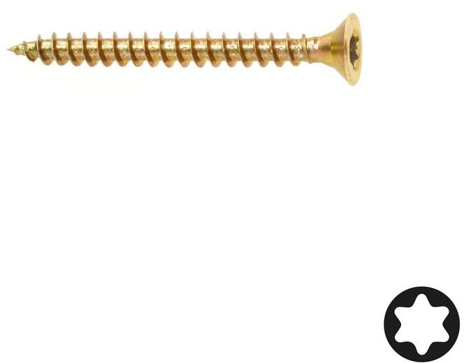 Süllyesztett fejű faforgácslapcsavar, TX hajtás, részmenetes, sárgára passzivált felülettel