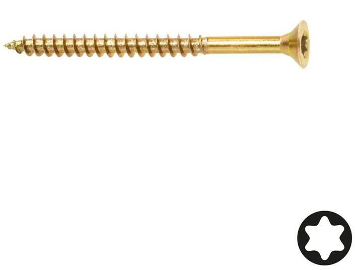Süllyesztett fejű faforgácslapcsavar, TX hajtás, részmenetes, sárgára passzivált felülettel