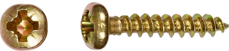 A 4 mm x 16 mm méretű, sárgára horganyzott acél pozdorjalemez- és univerzális csavar a felhasználási lehetőségek széles skáláját kínálja: Fa- és műanyag szerkezetekben, valamint - 5 mm - 6 mm méretű dübelek alkalmazásával - betonban is használható. Univerzális segítő, amely egyetlen otthonból sem hiányozhat. A teljes menet különösen nagy szilárdsággal rendelkezik a két összekapcsolt alkatrész közti húzó- és nyomóterhelésnél is. A pozdorjalemez csavar és univerzális csavar PZ-behajtással rendelkezik. A PZ-behajtás hasonló felépítésű, mint a PH-behajtás (kereszt), de még egy további kereszt alakú bevágással rendelkezik. Ez további tartást ad a behajtószerszámnak, így ez a behajtás némileg jobb az oldalirányú elcsúszás és az erőátvitel szempontjából, mint a PH-behajtás. A sárgára horganyzott pozdorjalemez csavar és univerzális csavar lényegesen jobb korrózióvédelemmel rendelkezik, mint a sima acél. De nem csak a külső hatások elleni védelme sokkal jobb, hanem a megjelenése is igényesebb. A félgömbfej az anyagon fekszik fel, így megakadályozza az anyag sérülését. A félgombfejű csavar használható dekorelemként, például szerelvényekhez és szegélylécekhez. A kerek forma csökkenti a sérülésveszélyt is. A csomag 50 darabot tartalmaz.