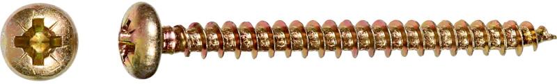 A 6 mm x 40 mm méretű, sárgára horganyzott acél pozdorjalemez- és univerzális csavar a felhasználási lehetőségek széles skáláját kínálja: Fa- és műanyag szerkezetekben, valamint - 8 mm - 10 mm méretű dübelek alkalmazásával - betonban is használható. Univerzális segítő, amely egyetlen otthonból sem hiányozhat. A teljes menet különösen nagy szilárdsággal rendelkezik a két összekapcsolt alkatrész közti húzó- és nyomóterhelésnél is. A pozdorjalemez csavar és univerzális csavar PZ-behajtással rendelkezik. A PZ-behajtás hasonló felépítésű, mint a PH-behajtás (kereszt), de még egy további kereszt alakú bevágással rendelkezik. Ez további tartást ad a behajtószerszámnak, így ez a behajtás némileg jobb az oldalirányú elcsúszás és az erőátvitel szempontjából, mint a PH-behajtás. A sárgára horganyzott pozdorjalemez csavar és univerzális csavar lényegesen jobb korrózióvédelemmel rendelkezik, mint a sima acél. De nem csak a külső hatások elleni védelme sokkal jobb, hanem a megjelenése is igényesebb. A félgömbfej az anyagon fekszik fel, így megakadályozza az anyag sérülését. A félgombfejű csavar használható dekorelemként, például szerelvényekhez és szegélylécekhez. A kerek forma csökkenti a sérülésveszélyt is. A csomag 10 darabot tartalmaz.