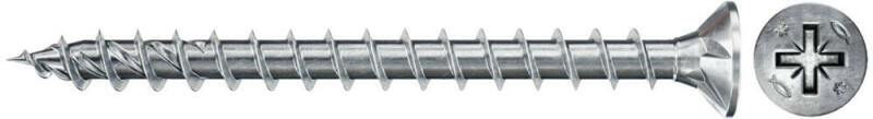 A Fischer Power-Fast FPF II CZF kékre horganyzott süllyesztett fejű, PZ behajtású, végigmenetes forgácslapcsavar. A süllyesztett fejnek köszönhetően a csavar a fafelületbe süllyeszthető. A végigmenettel rendelkező változat lehetővé teszi a faelemek nagy terhelhetőségét. A csavar alkalmas teherhordó elemek rögzítésére bevonattal rendelkező fához, keményfához és puhafához.   Előnyök