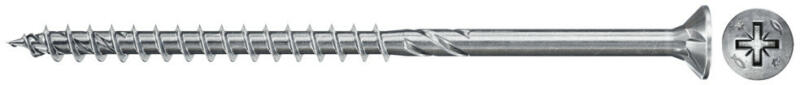 A Fischer Power-Fast FPF II CZP kékre horganyzott süllyesztett fejű, PZ behajtású, részmenetes forgácslapcsavar. A süllyesztett fejnek köszönhetően a csavar a fafelületbe süllyeszthető. A részmenettel rendelkező változat lehetővé teszi a faelemek szoros illesztését. A csavar alkalmas teherhordó elemek rögzítésére bevonattal rendelkező fához, keményfához és puhafához.   Előnyök