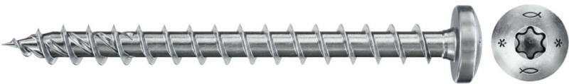 Fischer Power-Fast FPF II PTF kékre horganyzott lencsefejű, TX behajtású, részmenetes forgácslapcsavar. A lencsefejnek köszönhetően a csavar nagy terhelhetőséget tesz lehetővé maximális behajtóhegy-stabilitással. A fejkialakításának köszönhetően alkalmas fém-fa kapcsolatokhoz, például fémkonzolok vagy gerendatartók rögzítésére. A végigmenetes csavarok vékony tárgyakhoz és kevésbé kemény faanyagokhoz (pl. puhafához) javasoltak.   Előnyök