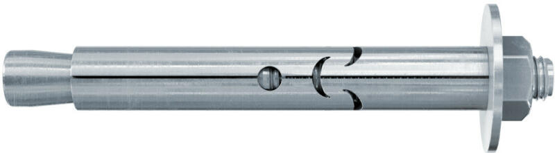 FSA-B átmenőszerelésű cinkkel galvanizált alapcsavar, anyával és alátéttel szerkezeti rögzítésekhez. Az FSA dübel időtakarékos átmenőszereléssel alkalmazható. A csavar, ill. a hatlapú anya meghúzásával a kúp behúzódik a hüvelybe, és azt a furatfalnak feszíti. A félhold alakú kivágásoknak köszönhetően a dübel meghúzásakor a hüvely tengelyirányban rövidülhet. A rögzített tárgy így üregek esetén is erősen a betonhoz feszül. Ideálisan alkalmazható létrák, kapuk és ideiglenes nem engedélyköteles rögzítésekhez.   Előnyök - A dübel kedvező geometriai kialakításának köszönhetően minimális energiaráfordítást igényel szereléskor. Így könnyen szerelhető rögzítést kapunk. - A dübelkonstrukció a fejkialakítások széles választékával lehetővé teszi a rögzítési pontok kifinomult tervezését. - A felület síkjába kerülő dübel lehetővé teszi a tárgy többszöri oldását és rögzítését.   Alkalmazások : könyöklők, konzolok, létrák, kábeltálcák, kapuk, homlokzatok, ideigelens vagy szerkezeti rögzítések.   Építőanyagok :Alkal mazható: beton C12/15-től C20/25-ig, repedésmentes; tömör szerkezetű terméskő.   Működése