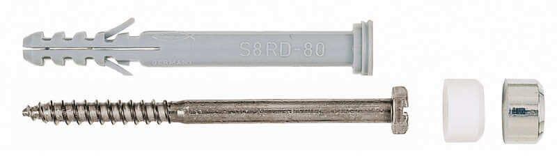 Komplett rögzítőkészlet dübellel, csavarral és fedősapkával.