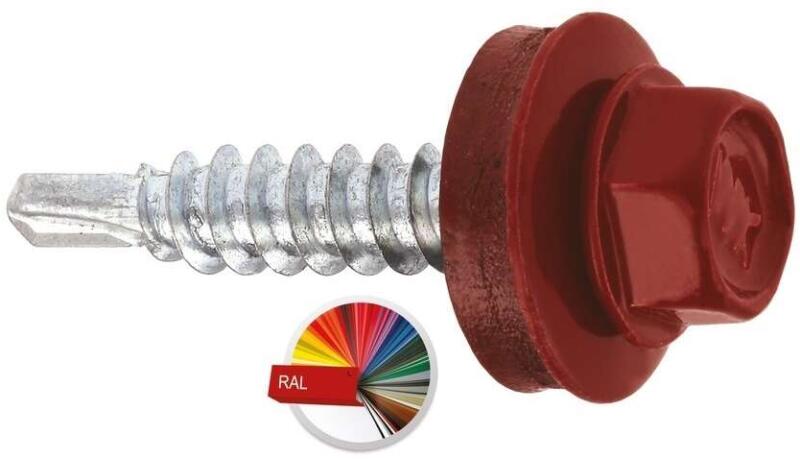 Hatlapfejű önfúró lemezsavar + fém-EPDM 4, 8*19 festett piros RAL3005