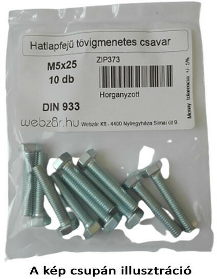 Hatlapfejű tövigmenetes csavar DIN 933 horganyzott M5x50 (10 db) (ZIP375) - vasasszerszam