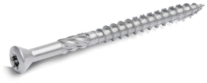 A self-drill hegy megkönnyíti a behajtást önmetsző előkészítés nélkül, míg a TORX 15 behajtási rendszer stabil és biztonságos csavarozást tesz lehetővé. A lapos, süllyesztett fej alatti bordázat segíti a csavar felszín alá történő szépen süllyesztését anélkül, hogy a fa sérülne, ami kiemelten fontos a finom felületkezeléshez.