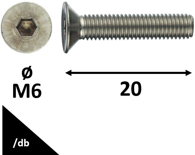 SÜLLYESZETT FEJŰ BELSŐKULCSNYÍLÁSÚ CSAVAR 8.8 HORG. DIN7991 M6X20 /DB