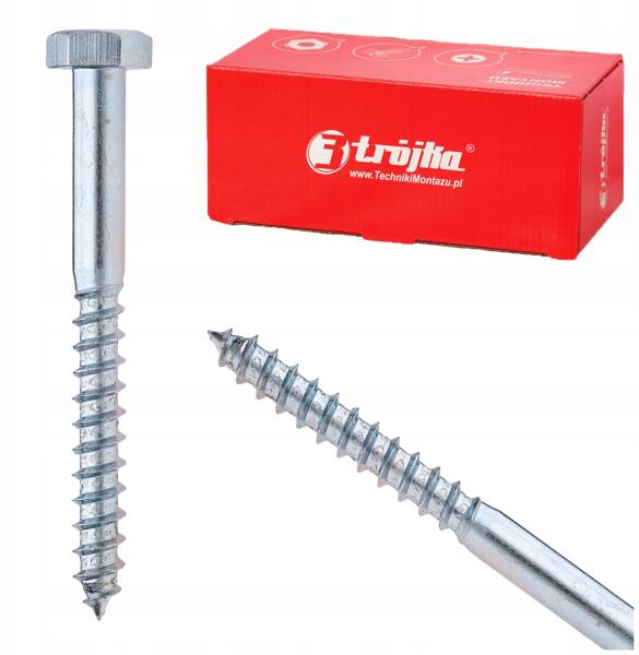 Trojka 8x160 Fa Csavar Hatszögfejű kulcsos facsavar 571 horganyzott 1KG (K - 8X160 - 1KG)ALLEGRO