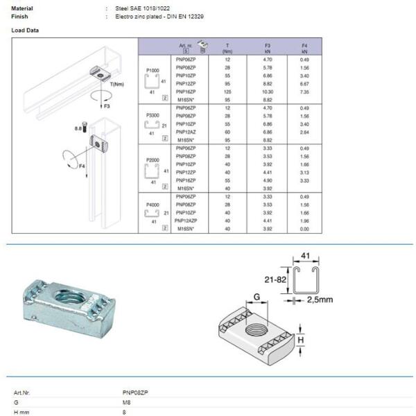 Tyco M08 anyacsavar unistrut Tyco típus (PNP08ZP)