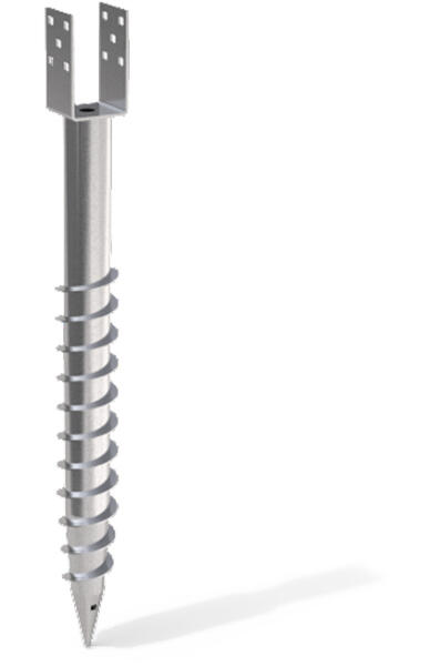 Talajcsavar 86,5 cm-es 9x9 cm-es oszlophoz Nagy terhelésre méretezett csavarok hosszú évekig tudják biztosítani a megfelelő statikai igénybevételt mindenféle elmozdulás vagy roncsolás nélkül.   Rögzítési lehetőség: Az U alakú csavarfejen lévő furatokkal.