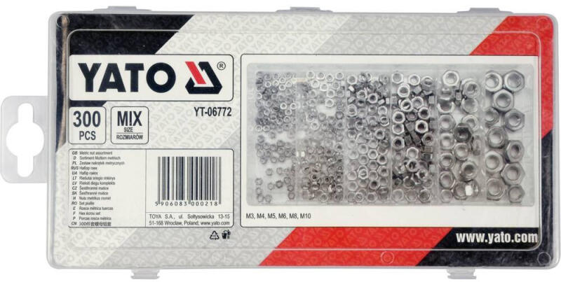 Yato hatlapú csavaranya készlet 300 részes M3-M10 (YT-06772)